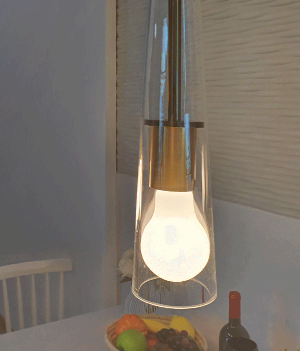 투명한 긴 유리갓의 유니크한 디자인