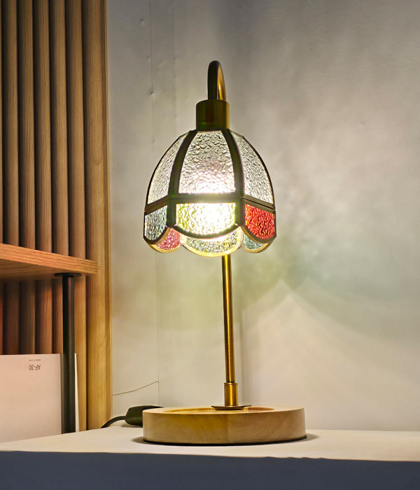E26베이스 트랜디한 골드 & 우드 스테인드글라스